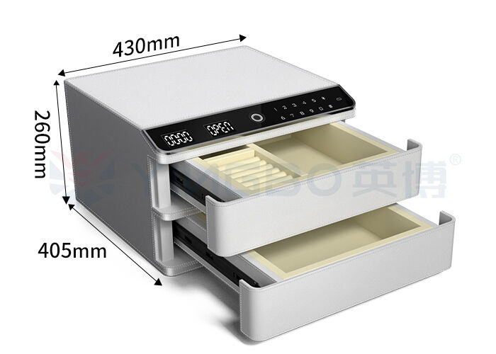 चमड़े से ढके ज्वैलरी सेफ बॉक्स में एक नया रूप, टेम्पर्ड ग्लास पैनल, खरोंच प्रतिरोध और उच्च तापमान, दृश्य संचालन, सरल और सुविधाजनक है।